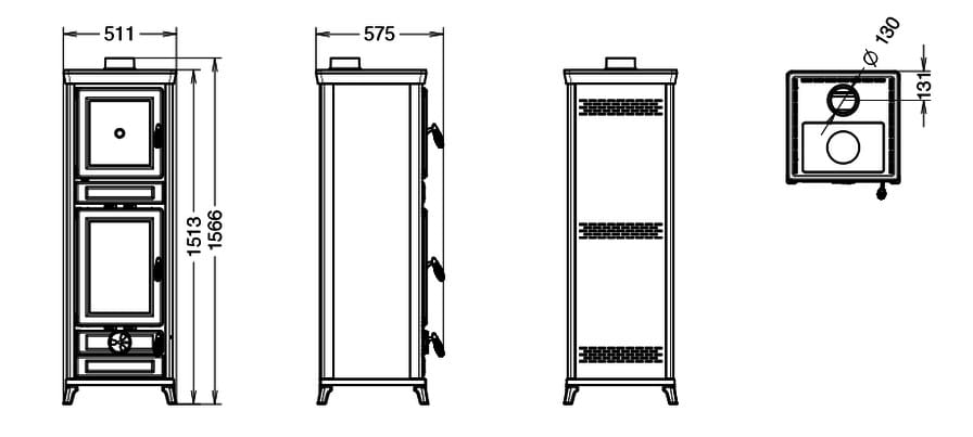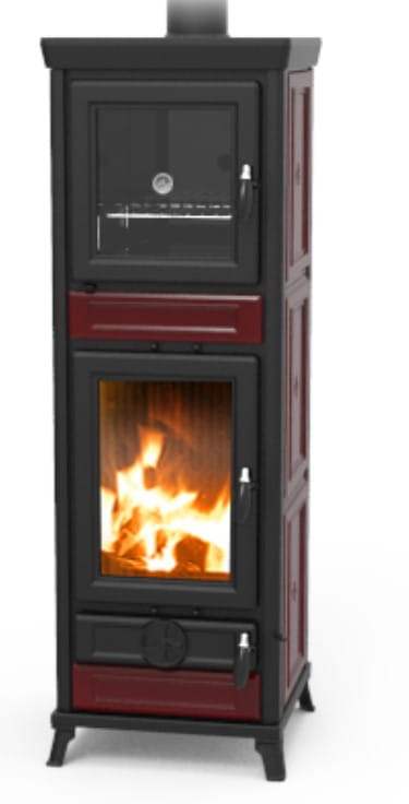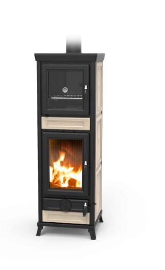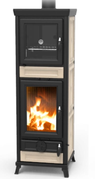 Piecyk na drewno Thermorossi Anna Maiolica idealnie nadaje się do ogrzewania pomieszczenia dzięki emisji ciepła po przez obudowę oraz szybę. Anna Maiolica jest świetnym rozwiązaniem jako dodatkowe źródło ciepła. Piecyk zapewnia przyjemny widok żywego ognia oraz świetnie prezentuje się w każdym pomieszczeniu. Dodatkowym atutem piecyka jest wbudowany piekarnik, który świetnie spełnia swoje zadania. Drzwi pieca wykonane są z żeliwa emaliowanego z odpornym na wysoką temperaturę szkłem ceramicznym (750 °C). Elementem charakterystycznym drzwi jest tzw. zimna klamka, wykonana z wysokiej jakości stali. Boki pieca wykonano z wysokiej jakości ceramiki. Górna pokrywa obudowy piecyka wykonana jest z żeliwa. Drzwiczki paleniska i popielnika wykonano z emaliowanej stali w kolorze czarnym. Piecyk posiada wyjmowaną tackę na popiół wykończoną z żeliwa emaliowanego. W piecu zastosowano technologię „by-pass” (zawór nadmiarowo-upustowy), uruchamiając urządzenie drastycznie została zredukowana możliwość wydobycia się dymu do pomieszczenia przy załadunku drewna.