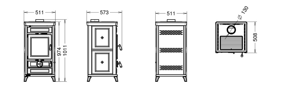 - Starter – wewnętrzny szyber ułatwiający rozpalenie w piecyku