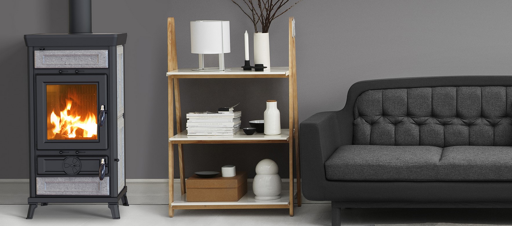 Piec, piecyk, kominek wolnostojący na drewno Ilaria Stone